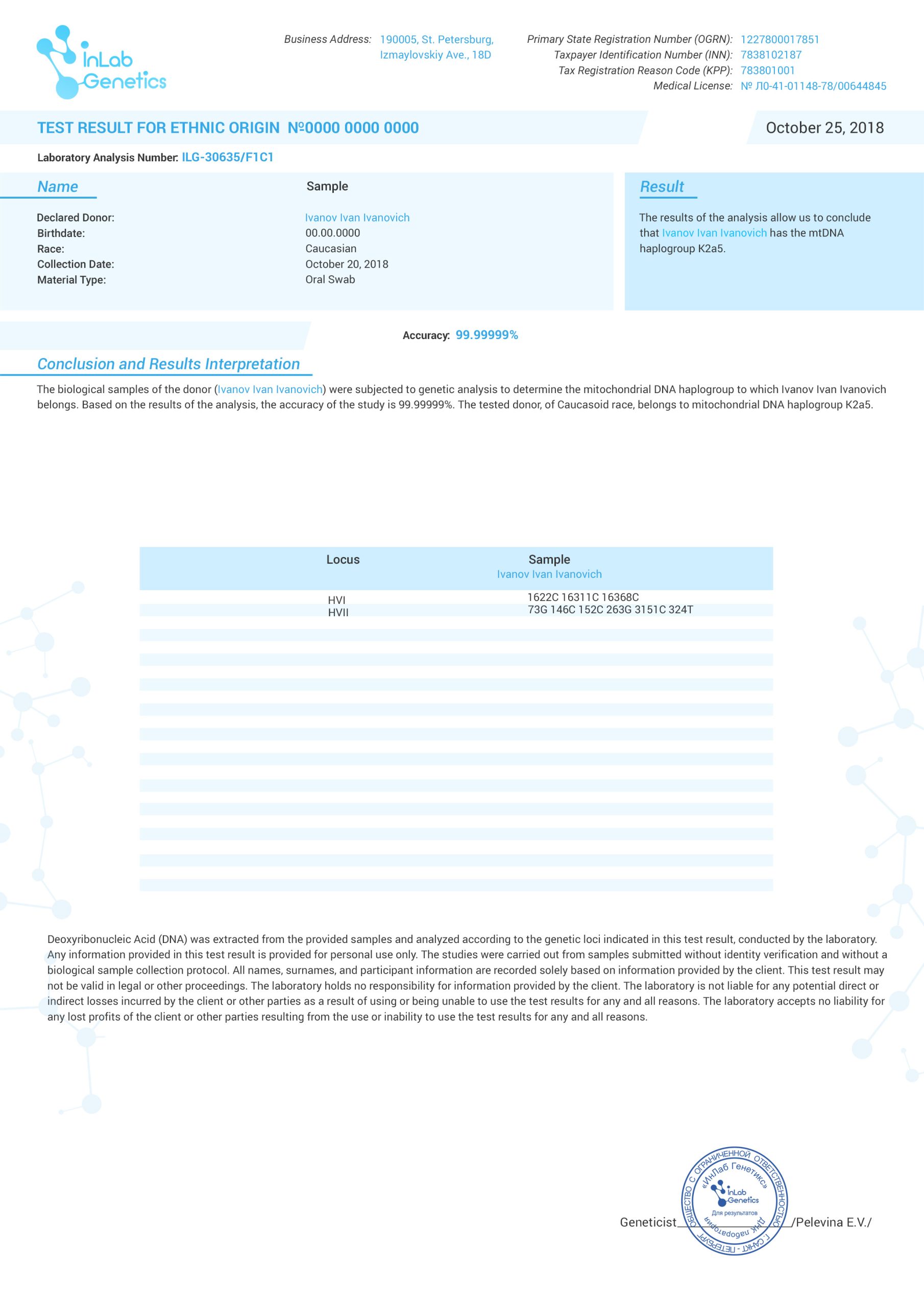 Our experts will help you decode a report made by another laboratory. We will provide a detailed multi-page document containing all the necessary information for a complete understanding. You just need to contact us and send your report from the other laboratory!
